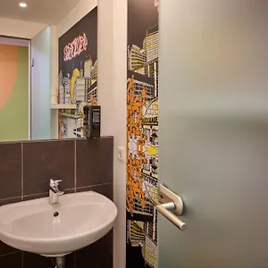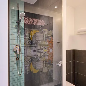 Bestimmte Zimmer in diesem Hostel in Berlin verfügen über ein gemeinschaftliches Bad mit einer behindertengerechten Dusche und einem Waschbecken, einige zusätzlich über einen Spiegel.